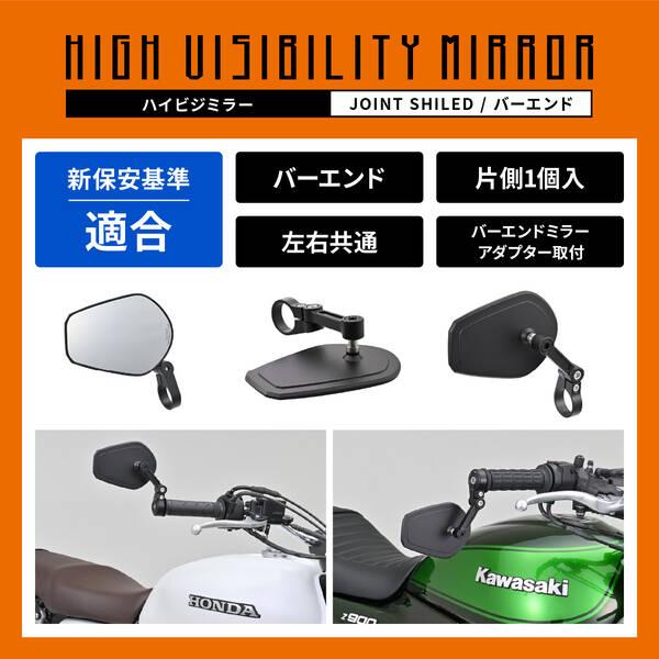 【商品説明】耐振性と広角視認性をそなえたバイク用バーエンドミラー。ヨーロッパで流行の厚さ5mmの超薄型ミラーヘッド。断面積を確保した高剛性アームで振動を軽減しミラーのブレを抑制しクリアな視界に。一般的に純正ミラーが曲率R1200-1300に対し、R1000の鏡面を採用しているので、後方視界を広く確保できます。・新保安基準適合品・鏡面にレーザーマーキング入り・クリアーミラー採用・左右共通 片側1本入り・アルミ削り出し・取付部Φ30、幅12mm●耐振性と広角視認性をそなえたバイク用バーエンドミラー●取付位置は調整式アームを採用し自由度が高い●鏡面:クリアーミラー/マットなブラック仕様 / 左右共通片側1本入り●新保安基準適合品●取付には別売のバーエンドミラーアダプターが必要です※ ハンドルを左右限界まで動かし、ミラーが車体に接触しないことを確認してください。※ ブレーキとクラッチレバーの操作を行ない、レバーとミラーアームが接触しないことを確認してください。※ ワイドミラータイプのため遠近感が純正と異なります。慣れるまで慎重に運転するよう心がけてください。※ 別売のバーエンドミラーアダプターが必要です。