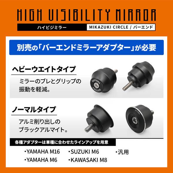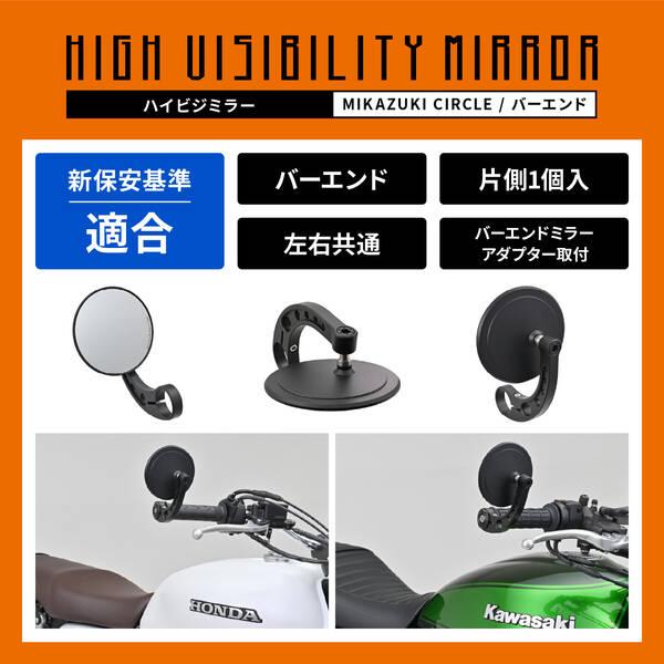 【商品説明】耐振性と広角視認性をそなえたバイク用バーエンドミラー。ヨーロッパで流行の厚さ6mmの超薄型ミラーヘッド。断面積を確保した高剛性アームで振動を軽減しミラーのブレを抑制しクリアな視界に。一般的に純正ミラーが曲率R1200-1300に対し、R1000の鏡面を採用しているので、後方視界を広く確保できます。・新保安基準適合品・鏡面にレーザーマーキング入り・クリアーミラー採用・左右共通 片側1本入り・アルミ削り出し・取付部Φ30、幅12mm●耐振性と広角視認性をそなえたバイク用バーエンドミラー●ヨーロッパで流行の厚さ6mmの超薄型ミラーヘッドを採用し、スタイリッシュなデザイン●鏡面:クリアーミラー/マットなブラック仕様 / 左右共通片側1本入り●新保安基準適合品●取付には別売のバーエンドミラーアダプターが必要です※ ハンドルを左右限界まで動かし、ミラーが車体に接触しないことを確認してください。※ ブレーキとクラッチレバーの操作を行ない、レバーとミラーアームが接触しないことを確認してください。※ ワイドミラータイプのため遠近感が純正と異なります。慣れるまで慎重に運転するよう心がけてください。※ 別売のバーエンドミラーアダプターが必要です。