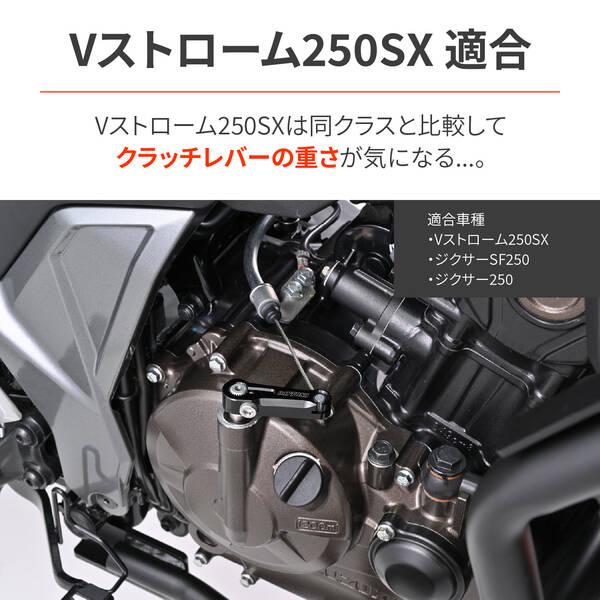 【商品説明】クラッチレバーを軽くしてクラッチ操作をしやすくなる、クラッチレリーズアーム。レバーの重さが気になる車両のエンジン側アーム比を変更することでクラッチ操作が20%軽くなります。シフトチェンジが楽になり街乗りが快適に。アルミ製ブラックアルマイト仕上げで、見た目もオシャレにカスタマイズ。【適合車種】Vストローム250SX(23) [8BK- EL11L]ジクサーSF250/ジクサー250(20-23) [8BK-E22Y]●適合車種:Vストローム250SX(23)、ジクサーSF250/250(20-23)●クラッチレバーを軽くしてクラッチ操作をしやすくする●車両のエンジン側アーム比を最適にし握りやすいクラッチレバーに●アルミ製ブラックアルマイトで見た目もオシャレにカスタマイズVストローム250SX(23) [8BK- EL11L]ジクサーSF250/ジクサー250(20-23) [8BK-E22Y]※ 取り付け後必ずクラッチが切れること、好みのクラッチインタイミングへの調整が必要です。