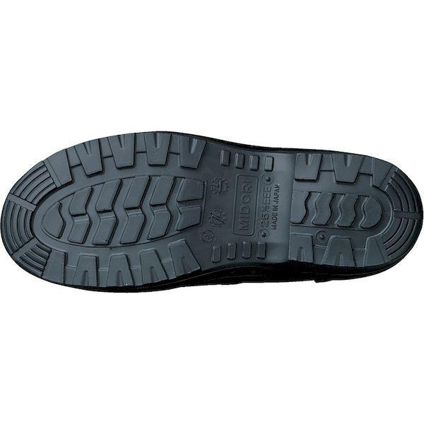 ミドリ安全メーカーお問い合わせ:048-989-3177【特長】●爆発危険区域や水素などを扱う危険度の高い現場でも使用できます。●低温度環境でも安定した静電気除去性能を発揮します。●靴底から静電気を逃がし、スパークの発生を防止します。●JIS耐滑性能「F」合格の滑りにくい靴底です。●親指をまっすぐに伸ばして、快適に着用できるワイド樹脂先芯を使用しています。【用途】●静電気を帯びる現場作業。【仕様】●寸法(cm):24.0●足幅サイズ:EEE●色:ブラック●耐圧迫荷重(kN):10±0.1●電気抵抗値:1.0×10[[の5-7乗]]Ω(23℃ C1)●US(アメリカ)規格サイズ:6●UK(イギリス)規格サイズ:6●EU(ヨーロッパ)規格サイズ:38【仕様2】●JIS T 8101 革製S種〈普通作業用〉E・F合格●JIS T 8103 EDX-P/C1合格(特殊静電靴)●耐圧迫性荷重:10±0.1kN【材質/仕上】●甲被:牛クロム革(ソフト型押)●先芯:ワイド樹脂●靴底:合成ゴム2層【注意】●中敷きを交換する場合は、ミドリ安全が推奨する同等品を使用してください。(JIS T8101安全靴の規定より)【原産国】日本