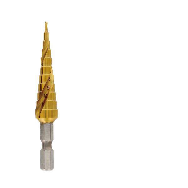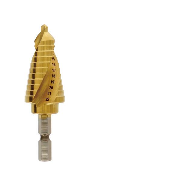 ●特長●このセットで2~30mmまで1mm間隔で穴あけが出来る●薄鉄板・樹脂板・木材等の穴あけ作業や穴径の拡大修正に●段を飛ばして目的の穴径に素早く到達●様々な用途・職種に対応できるよう、1mm間隔で穴径を設定●仕様、規格●STD-0212●サイズ全長 77mm ●穴あけサイズ:Φ2~12mm(11段)●最大穴あけ可能板厚:2.0mm●六角軸6.35mm●材質:チタンコーティングハイス鋼●EXST-1222