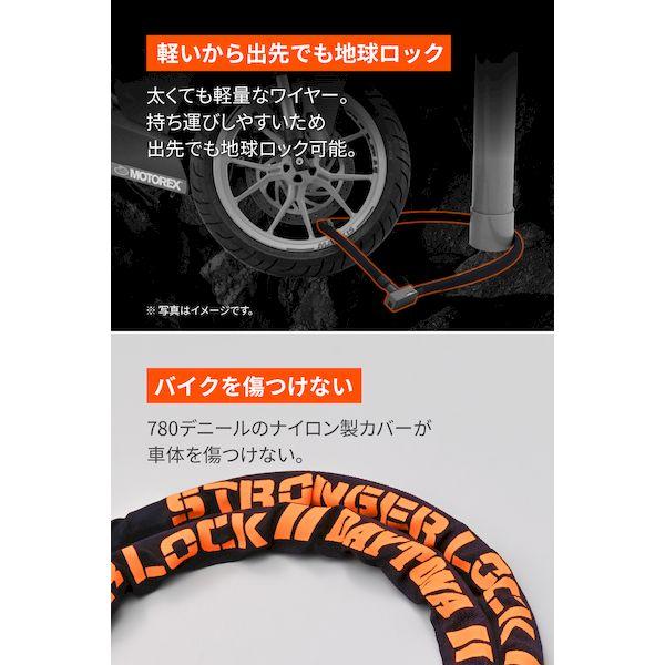 【商品説明】軽量で持ち運びが簡単なワイヤーロック。外出先でもロックが可能。ダイヤルロック式でカギが増えずに便利です。頑丈な780デニールのナイロンカバーとPVCチューブが、ワイヤーの腐食と車体への傷つきを防ぎます。・ダイヤルの初期設定は「― ― ― ― 」となります。●軽量で持ち運びが簡単なワイヤーロック。外出先でもロック可能●ワイヤー部分だけで20mmある極太ワイヤー●頑丈な780デニールのナイロンカバーとPVCチューブでワイヤーの腐食と車体へのキズを防止●ロック部はカギ持ち運びが不要なダイヤルタイプ●ホイールに掛けてロックするのに使いやすい長さ※ ロックを装着したまま車両を移動しないでください。※ 盗難を完全に防ぐものではありません