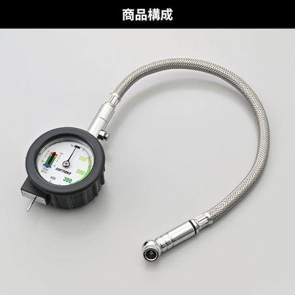 【商品説明】適正空気圧とタイヤ溝が1台で測定可能なエアゲージ。3色分けされた目盛りで高低判断ができるので測定が簡単。ヘッド部とホース根本の2か所が回転可動するので、作業がしやすくなっています。タイヤ溝の深さを測定するデプスゲージ付き。バイクと車のタイヤにお使いいただけます。・サイズ:外径φ65、厚さ約40mm、ホワイトパネル径:φ45mm・測定可能範囲:0-400kPa ・ホース長:約280mm・ホース2か所回転可動・リリースバルブ付き・米式バルブ専用 ・デプスゲージ測定可能範囲:0ー12mm●パネルの3色分けされた範囲から高低判断ができる、測定が簡単なエアゲージ●ヘッドとメッシュホース根本が回転可動し、せまい空間でもエアバルブにヘッドが当てやすい●測定可能範囲:0-400kPa ●サイズ:外径φ65、厚さ約40mm、ホワイトパネル径φ45mm、ホース長 約280mm●デプスゲージはバイクから車まで使用可能。測定可能範囲:0ー12mm ※ 0~30kPaの範囲は低圧のため正確な測定はできませんので数値と目盛はありません。