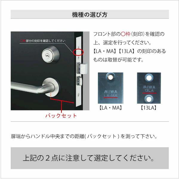 【商品説明】●美和ロック社製レバーハンドル用錠前ケースです。●フロントに「13LA」「LA・MA」の刻印のされたものが交換可能です。●バックセット:64mm●交換用にご購入される場合は、必ず現在使用している錠前ケースのバックセットを測ってください。●ラッチの向きを変えることで左右共用で使用できます。●シリンダー・サムターン・レバーハンドルは付属しておりません。