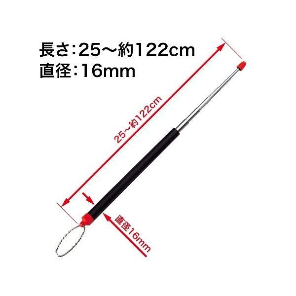 ●先端は見やすい蛍光色です。転がらない六角形、吊り下げに便利なチェーン付です。●本体:PVC/伸縮部:真ちゅう・クロームメッキ●サイズ:L25~約122cm φ16mm/140g