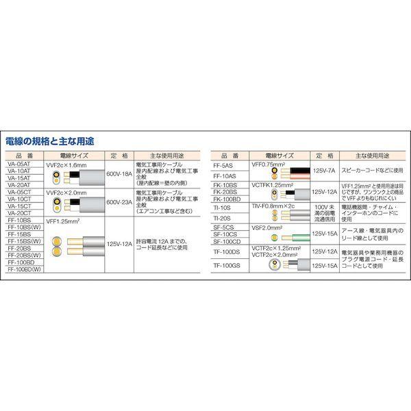 正和電工メーカーお問い合わせ:0774-31-8111【特長】●主に室内で使用する交流300V以下の、小型電気器具に用いる電線で、より線の導体にビニール絶縁を施したものです。(単芯ビニールコード)【用途】●アース線や、電気器具内のリード線として。【仕様】●色:緑●芯数:1●全長(m):10●定格:125V-15A●外形寸法(mm):3.4●絶縁体厚さ(mm):0.8【仕様2】●JIS C3306規格品●導体(より線) 断面積:2.0mm[[の2乗]] 素線数(本)/素線径:37/0.26mm●絶縁体厚さ:0.8mm●外寸:3.4mm●VSF(単芯)ビニールコード【原産国】日本