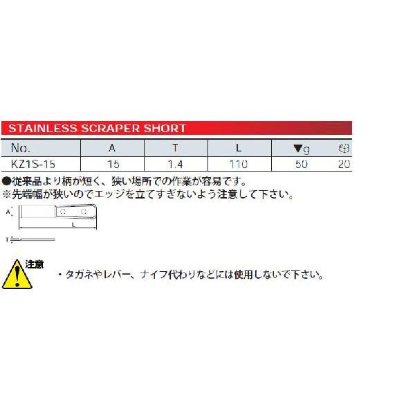 【特長】●スタンダードなステンレスのスクレーパーです。●従来品より柄が短く、狭い場所での作業が容易です。【仕様】●刃長(mm):42●刃幅(mm):15●全長(mm):110●刃厚(mm):1.4【仕様2】●刃厚:1.4mm【材質/仕上】●刃:ステンレス●グリップ:合板【注意】●先端幅が狭いのでエッジを立てすぎないように注意してください。●タガネやレバー、ナイフ代わりなどには使用しないでください。【原産国】日本