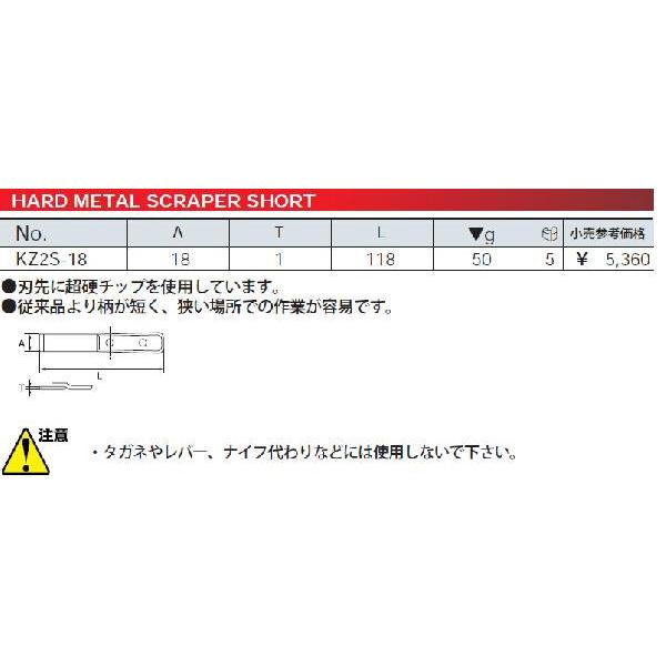 【特長】●刃先には超硬チップを使用しています。【仕様】●刃長(mm):50●刃幅(mm):18●全長(mm):118●刃厚(mm):1【仕様2】●刃厚:1mm【材質/仕上】●刃:超硬●グリップ:合板【注意】●タガネやレバー、ナイフ代わりなどには使用しないでください。【原産国】日本
