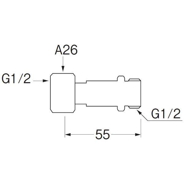 三栄水栓製作所メーカーお問い合わせ:03-6383-7281【特長】●配管の長さが少し足りない場合に便利なアダプターです。●袋ナット回転式で施工しやすいです。【仕様】●全長(mm):55●六角対辺(mm):26●呼び径:G1/2【仕様2】●パッキン付(ノンアスベスト)【材質/仕上】●黄銅【原産国】日本