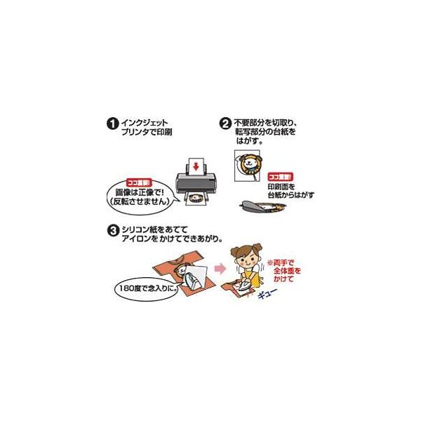 ・インクジェットプリンタで簡単にアイロン転写ができる便利な用紙ですが、転写後の布は市販されているプリントTシャツやシルク印刷されている布などと異なり、デリケートな取扱いが必要です。これらの布と同様に扱わないようご注意ください。