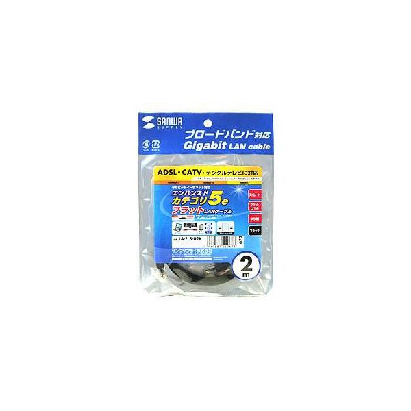 サンワサプライ LA-FL5-02K UTPエンハンスドカテゴリ5より線フラットケーブル ブラック・2m LAFL502K