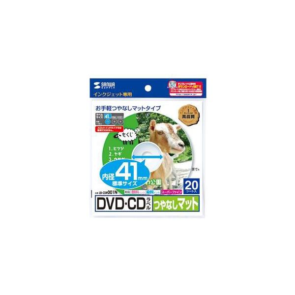 サンワサプライ LB-CDR001N インクジェットDVD/CDラベル 内径41mm・つやなしマット・20ラベル LBCDR001N
