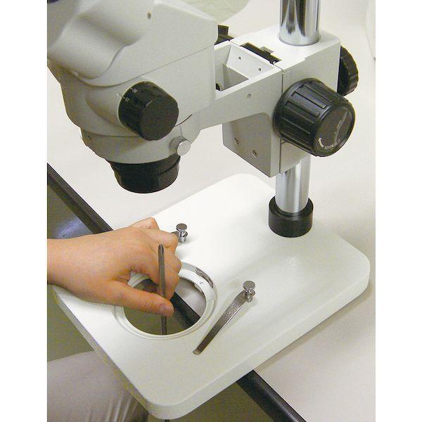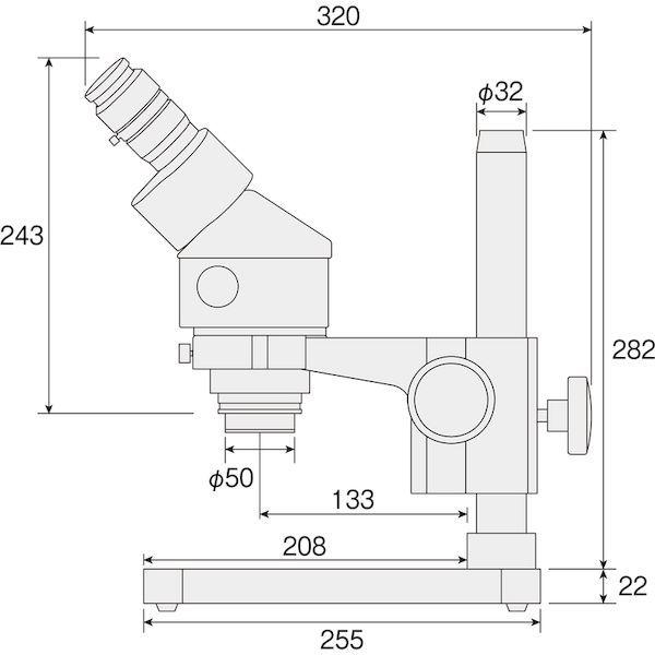 ホーザンメーカーお問い合わせ:06-6567-3132HOZAN L-46 実体顕微鏡【特長】ズーム比6.4最高倍率45×のズーム式実体顕微鏡 ●像の明るさ、シャープさはもちろん、焦点深度の深い像を実現させた精密検視用ズーム式実体顕微鏡です。●検視しながら作業しやすい84mmの作動距離を確保。●支柱部からレンズ中心部まで133mmと奥行きが広く、 検視作業が楽に行えます。●総合倍率は標準で7?45×。オプションの接眼レンズやコンバーションレンズを使用して幅広い倍率や視野が得られます。(倍率:3.5~180×)●クリップ(止め金具)2個 付属 ●主な仕様 ●総合倍率:7~45× ●対物レンズ:0.7~4.5×(ズーム比 6.4) ●接眼レンズ:WF10×・視野数20(L-546-10) ●視度調整:左右独立式、±5Dptr ●作動距離:84mm(レンズフィルター/リング装着時) ●ピント調整:鏡筒上下式(可動範囲50mm) ●鏡筒形式:双眼45°傾斜鏡筒眼幅調整範囲:54~75mm・左右連動式 ●ベース寸法:200(W)×255(D)mm ●支柱の高さ:282mm ●レンズ中心から支柱まで:133mm ●重量:4.2kg