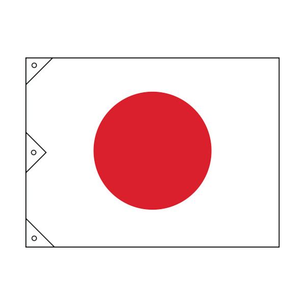 日本緑十字社メーカーお問い合わせ:06-6443-6139【特長】●耐久性に優れた木綿生地(天竺)を使用しています。【用途】●施設内外での掲示用に。【仕様】●縦(mm):900●表示内容:日章旗●横(mm):1250●取付仕様:ヒモ(3本付属)●厚さ(mm):0.05【仕様2】●ハトメ穴3ヵ所(10mmφ-3)【材質/仕上】●基材:木綿生地(天竺)【セット内容/付属品】●ヒモX3本【注意】●加工上多少の違寸が生じる場合があります。【原産国】日本