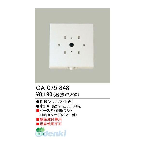 オーデリックメーカーお問い合わせ:03-3332-1123明暗センサ OA075848寸法:巾216 高219 出30製品重量(kg):0.4本体材質:樹脂(オフホワイト色)明暗センサー:○●ベース型(絶縁台型)明暗センサ(タイマー付)注意事項:壁面取付専用注意事項:浴室使用不可