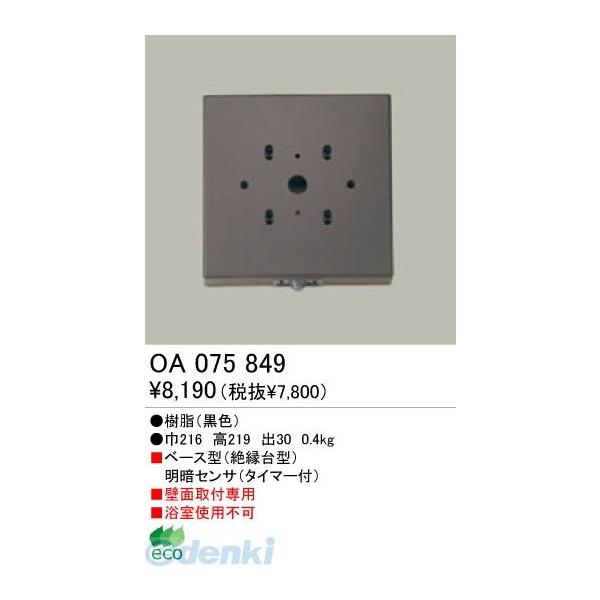 オーデリックメーカーお問い合わせ:03-3332-1123明暗センサ OA075849寸法:巾216 高219 出30製品重量(kg):0.4本体材質:樹脂(黒色)明暗センサー:○●ベース型(絶縁台型)明暗センサ(タイマー付)注意事項:壁面取付専用注意事項:浴室使用不可