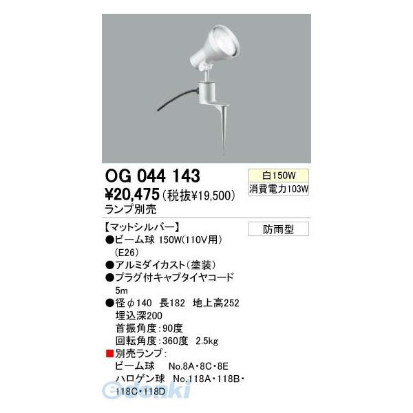 オーデリックメーカーお問い合わせ:03-3332-1123エクステリアライト OG044143ランプ別売ランプ種類:白熱灯総W数(W):150寸法:径φ140 長182 地上高252 埋込深200首振角度:90度回転角度:360度製品重量(kg):2.5本体材質:アルミダイカスト(塗装)ランプ名称:ビーム球ランプ灯数(灯):1適用空間:エクステリア防湿防雨対応:防雨型●別売ランプ:ビーム球 No.8A・8C・8Eハロゲン球 No.118A・118B・118C・118Dエクステリア取付・施工:地中差込・置形
