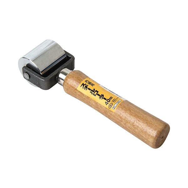 【用途】クロスやカーペットなどの圧着。【機能・特徴】コルクタイル貼りや自転車パンク貼りなど多目的に使用可能です。重量があるから、接着させるのにたたきながら使用できます。【仕様】●ローラー幅:40mm。●ローラー重量:450g。●柄:木。大工道具 内装ツール 内装用品