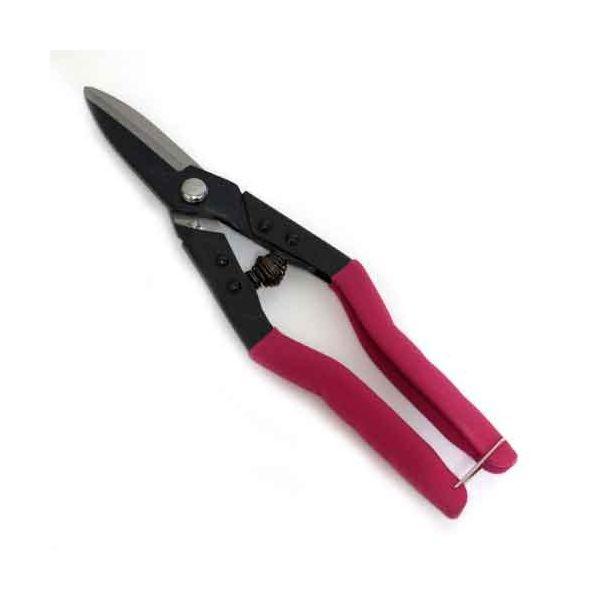 【用途】軟鋼材、銅板、真鍮板、アルミ板、プラスチック板、家庭菜園の摘花・芽切り。【機能・特徴】ノコ目があるので対象物がすべりにくいです。バネ付きで、ハサミの開閉が楽にできます。カシメ部はボルトを使いスプリング座金の使用により、ナットの締付け調整を自由に変更できます。スプリングを取りナットをゆるめて行くと簡単に分解できますので、サビ取り、研ぎなおしに便利です。手にやさしくフィットする幅広ソフト樹脂グリップを採用しています。【仕様】●切断目安:(軟鋼材・銅板・真鍮版)板厚0.5mmまで。●大工道具 金切鋏カッター 金切鋏
