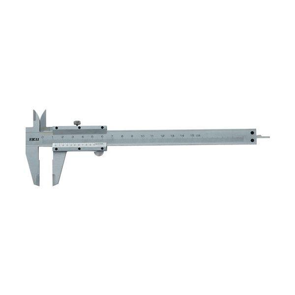 【用途】本尺とバーニヤ(副尺)の目盛を組み合わせて、精度ある値の測定。【機能・特徴】本尺とバーニヤ(副尺)の目盛を組み合わせて、精度ある値を読み取ります。【仕様】●使用例:外径測定・内径測定・深さ測定・段差測定。●測定範囲:0.05mm~150mm。●精度:0.1mm。●ハイカーボン。●スチール鋼。●ハードクロームメッキ。●収納ケース。【注意事項ほか】用途以外の使用はしないで下さい。ご使用前に本体の油、ホコリなどを拭き取って下さい。このノギスの精度を超える、精度を必要とする作大工道具 測定具 ノギス