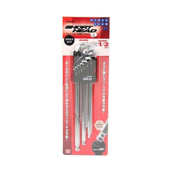 【用途】六角ボルト、ネジ締め用9本組ショートヘッド・エキストラロング六角棒レンチセット。【機能・特徴】ボールポイント形状により狭い場所や障害物のある場所でも、斜めから六角穴に挿入できます。ハードクロームメッキ処理により、摩耗・腐食を防ぎます。特殊合金鋼使用のため高強度・靭性・耐久性に優れています。曲げ部から先端までの長さが同メーカー従来の1/2以下と短くなり、狭い場所での作業が可能です。【仕様】●傾斜角度:約25度。●硬質ハードクロームメッキ処理。●エキストラロング。●特殊合金鋼(S作業工具 ドライバー 六角棒レンチ DIY