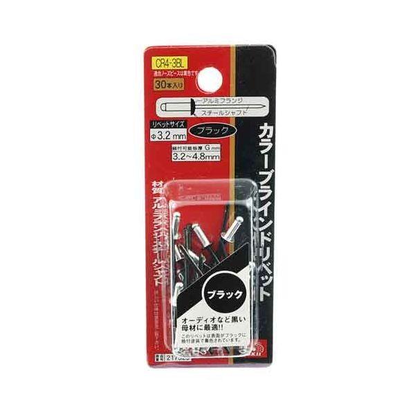 【用途】部材と母材の締結。【機能・特徴】オーディオなど黒い母材に最適です。ハンドリベッターでのカシメ作業にご使用ください。【仕様】●リベット径:3.2mm。●下穴寸法:3.3~3.4mm。●締付可能板厚:3.2~4.8mm。●引張強度:140kg。●剪断強度:90kg。●入数:30本入。●カラー:ブラック。●フランジ:アルミ。●シャフト:スチール。【注意事項ほか】作業時は保護メガネを着用してください。作業工具 クランプバイス DIY クランプバイス
