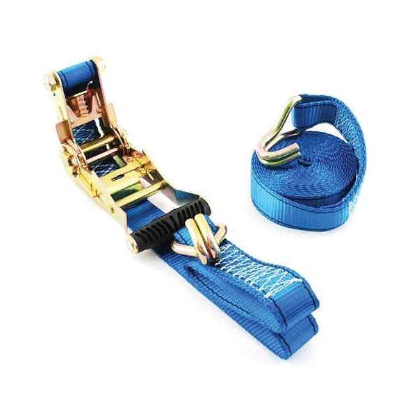 【用途】軽トラックでの積荷の固定。【機能・特徴】ラチェット機能付きで、しっかりと荷物の締め付けが行えます。ハンドルは、手にやさしいゴムグリップ付きです。【仕様】●ベルト幅:38mm。●ベルト厚:2.5mm。●ベルト長さ:5m(固定側:1m・巻取側:4m)。●破断強度:2000kg。●使用荷重:400kg。●ワイドゴムグリップ。●Jフック。●ベルト:ポリエステル。【注意事項ほか】ベルトが鋭角部に接触する箇所には適当な当てもの・パットを当ててください。ラチェットバックルの巻き取作業工具 荷締機スリング 荷締ベルト