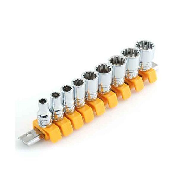 【用途】六角ボルト・ナット(ミリ・インチ・トルクス)の締付け、緩め作業。【機能・特徴】1サイズのソケットでミリ・インチ・トルクスなどの色々なネジに対応できます。新型ソケットホルダーを採用しました。ワンタッチ操作で、簡単にソケットを取外せ、確実にソケットを取付けられます。六角ボルト・ナット(ミリ・インチ・トルクス)に対応します。【仕様】●差込角:6.35mm(1/4インチ)。●サイズ内容:5.5・6・7・8・10・11・12・13・14mm。●対応サイズ内容(インチボルト):7/32・1作業工具 ソケット ソケットレンチセット