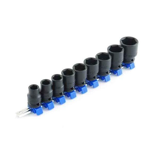 【用途】エアー駆動や電動のインパクトレンチなどの動力工具用ソケット。【機能・特徴】パワーツール(エアー・電動)に対応したソケットです。新型ソケットホルダーを採用しました。ワンタッチ操作で、簡単にソケットを取外せ、確実にソケットを取付けられます。六角ボルト(ミリ)に対応します。【仕様】●差込角:12.7mm(1/2インチ)。●サイズ内容:12・13・14・17・19・21・22・24・27mm。●ソケットホルダー付。●クリップ色:青。●仕上げ:黒仕上。●ソケット:クロームモリブデン作業工具 ソケット ソケットレンチセット