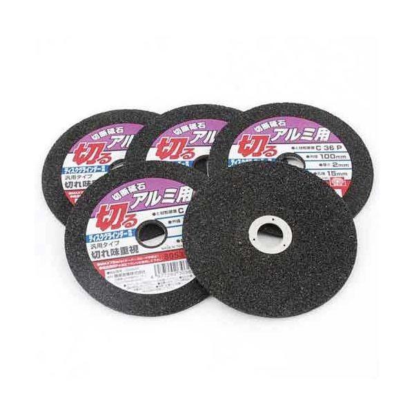 【用途】アルミの切断作業。【機能・特徴】切れ味の良いアルミ専用砥石です。【仕様】●サイズ(外径×厚さ×孔径):100×2.0×15mm。●砥材・粒度・硬度:C36P。●最高使用周速度:72m/s。●ディスクグラインダー専用。●5枚組。【注意事項ほか】保護メガネ・マスクなど安全保護具を着用して正しく安全にご使用下さい。オーバースピードや側面使用はしないでください。砥石に、カケ、歪み、ヒビ、ワレ、水ぬれ、油ぬれなどの使用上有害な欠陥がないことを確認してください。先端工具 ジスク両頭アクセサリ 切断砥石 金属