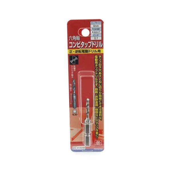 【用途】鉄板・非鉄金属・樹脂などのタップ立て用。【機能・特徴】タップの下穴あけとねじ切りが同時にできる便利な電動用タップドリルです。【仕様】●正・逆転電動ドリル用。●タップサイズ4.0mm×ピッチ0.7。●加工材の厚さ:4mm以下。●回転数(鉄):800min-1。●6.35mm六角軸。●HSS/ハイス鋼。先端工具 鉄工アクセサリ タップダイス