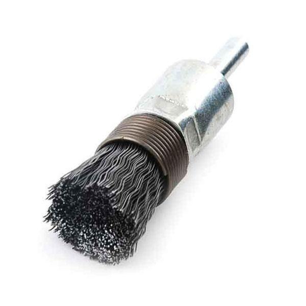 【用途】鉄・軽金属・木材のサビ落とし・塗装はがし・バリ取り。【機能・特徴】パイプの内面研磨やクリーニングなど、狭い場所やコーナー部に便利です。変木・木の根などの仕上げにも使用出来ます。【仕様】●軸径:6mm。●直径:約19mm。●対応機種:電気ドリル・フレキシブルシャフト・エアードリル。【注意事項ほか】保護メガネなど安全保護具を着用して正しく安全にご使用下さい。先端工具 ドリルアクセサリ 軸付 砥石ヤスリワイヤ
