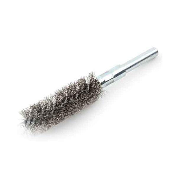 【用途】ステンレスの研磨、鉄のサビ落とし、内面研磨作業。【機能・特徴】ステンレス、鉄などの、サビ落とし、塗装はがし、汚れ落とし、バリ取りにご使用ください。【仕様】●軸径:6mm。●直径:約15mm。●対応機種:電気ドリル・フレキシブルシャフト・エアードリル。●ブラシ:ステンレス製。【注意事項ほか】保護メガネなど安全保護具を着用して正しく安全にご使用下さい。先端工具 ドリルアクセサリ 軸付 砥石ヤスリワイヤ