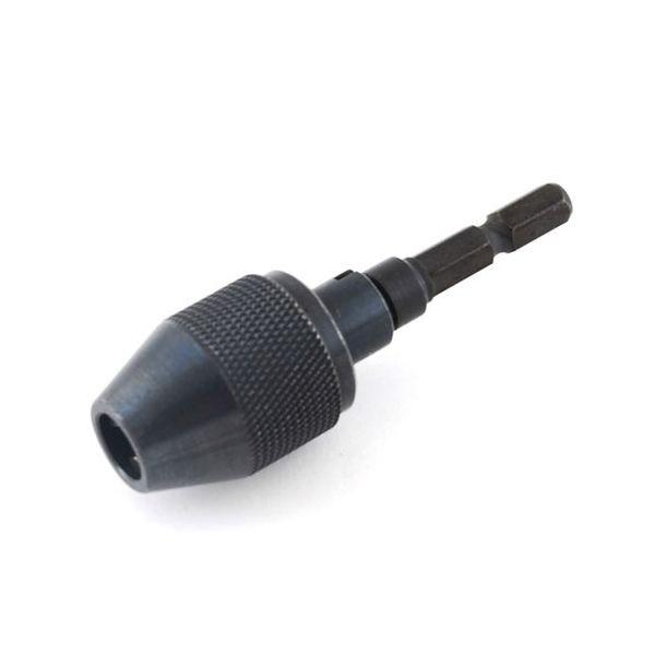 【用途】充電式ドリルドライバー・電気ドリルに取り付けて各種先端工具を把握するドリルチャック。【機能・特徴】キーレスチャックなので手締めで簡単に装着できます。軽量タイプなので女性でも楽に使用できます。チャックハンドルが不要です。回転部を右の方向に廻すと締まり、左に廻すと緩みます。【仕様】●取り付け可能サイズ:1.5~6.5mm。●6.35mm六角軸。●チャック径:6.5mm。●適応機種:充電ドリル・電気ドリル。●正回転専用。【注意事項ほか】インパクトドライバーでのご使用はおやめ下先端工具 ドリルアクセサリ ドリルチャック