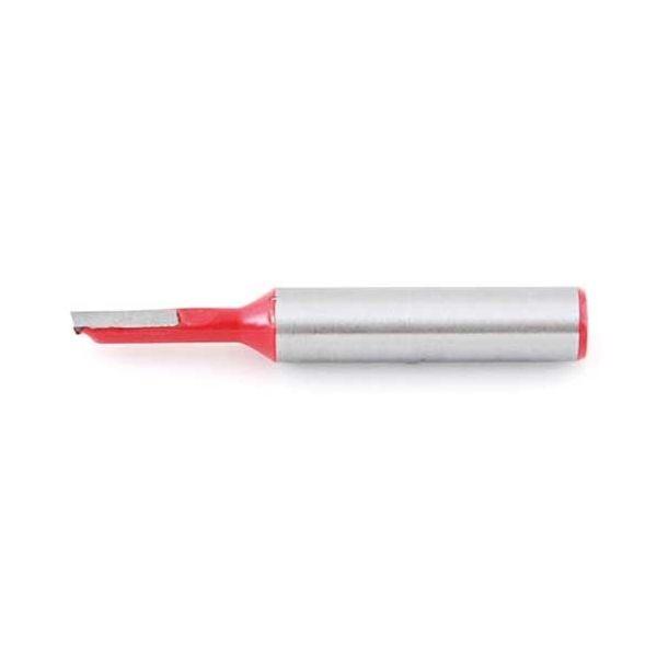 【用途】木材の溝堀加工や面取り作業。【機能・特徴】トリマー用の先端ビットです。硬度の高い超硬チップを厳選しているため、耐久性抜群です。【仕様】●サイズ:3mm。●サイズ:D(幅)3×H(高さ)8mm。●軸径:6mm。【注意事項ほか】刃先は衝撃に弱いので、当てたり落としたりしないで下さい。使用後の刃物は熱いので、触らないでください。刃先は衝撃に弱いので、当てたり落としたりしないで下さい。精度を要する作業は材料で事前に試し切りをして下さい。先端工具 電動アクセサリ トリマールーター