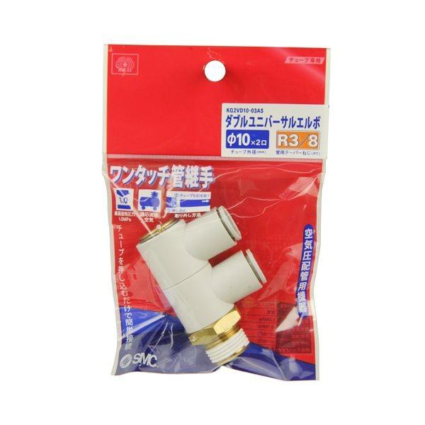【用途】エア配管用チューブ管継ぎ手。【機能・特徴】めねじ部からの直角方向の分岐配管に使用します。分岐側取付部は独立しており方向はフリーです。【仕様】●適用チューブ材質:ポリウレタン・ナイロン。●適用チューブ外径:10mm(×2口)。●接続ねじ:おねじR(PT)3/8。●使用圧力範囲:-0.1~1MPa。●周囲温度:-5~60度。●本体材質:PP・C3604・SUS304・NBR・他。電動工具 エアーツール チューブ継ぎ手