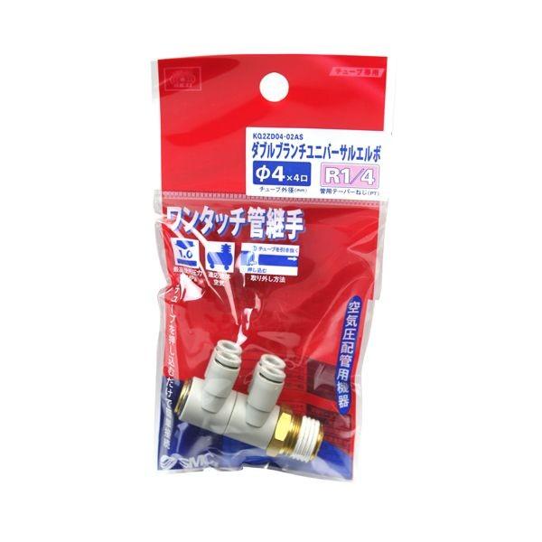 【用途】エア配管用チューブ管継ぎ手。【機能・特徴】めねじ部からの直角方向の4分岐配管に使用します。分岐側取付部は2系統で独立しており方向はフリーです。【仕様】●適用チューブ材質:ポリウレタン・ナイロン。●適用チューブ外径:4mm(×4口)。●接続ねじ:おねじR(PT)1/4。●使用圧力範囲:-0.1~1MPa。●周囲温度:-5~60度。●本体材質:PP・C3604・SUS304・NBR・他。電動工具 エアーツール チューブ継ぎ手