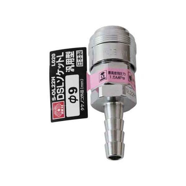 【用途】汎用ソケット。【機能・特徴】エア配管を簡単にワンタッチで脱着出来ます。従来品と同形状の差し込み形状で本体を大幅に小型軽量化しました。純日本製です。【仕様】●汎用エアソケット。●たけのこ外径:9mm。●サイズ:62.2X23。●重量:65g。●適用流体:空気。●最高使用圧力:1.5Mpa。●本体:鋼鉄・他。●Oリング:NBR。電動工具 エアーツール カプラジョイント