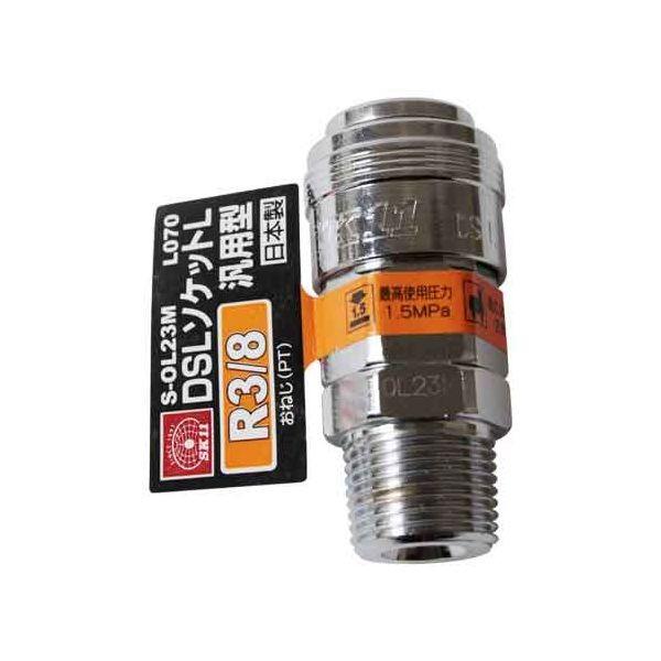 【用途】汎用ソケット。【機能・特徴】エア配管を簡単にワンタッチで脱着出来ます。従来品と同形状の差し込み形状で本体を大幅に小型軽量化しました。純日本製です。【仕様】●汎用エアソケット。●R3/8。●サイズ:50.2X23。●重量:73g。●適用流体:空気。●最高使用圧力:1.5Mpa。●本体:鋼鉄・他。●Oリング:NBR。電動工具 エアーツール カプラジョイント