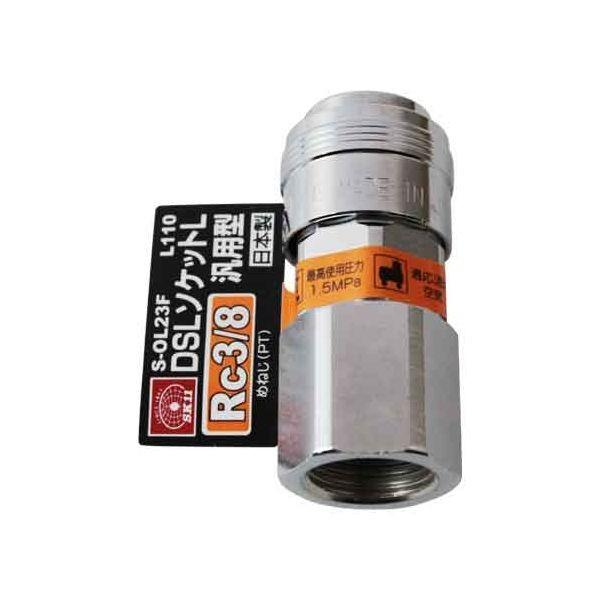 【用途】汎用ソケット。【機能・特徴】エア配管を簡単にワンタッチで脱着出来ます。従来品と同形状の差し込み形状で本体を大幅に小型軽量化しました。純日本製です。【仕様】●汎用エアソケット。●Rc3/8。●サイズ:51.2X23。●重量:81g。●適用流体:空気。●最高使用圧力:1.5Mpa。●本体:鋼鉄・他。●Oリング:NBR。電動工具 エアーツール カプラジョイント