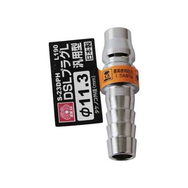 【用途】汎用型プラグ。【機能・特徴】エア配管を簡単にワンタッチで脱着出来ます。従来品と同形状の差し込み形状で本体を大幅に小型軽量化しました。純日本製です。【仕様】●汎用エアプラグ。●たけのこ外径:11.3mm。●サイズ:52X15。●重量:28g。●適用流体:空気。●最高使用圧力:1.5Mpa。●本体:鋼鉄・他。電動工具 エアーツール カプラジョイント