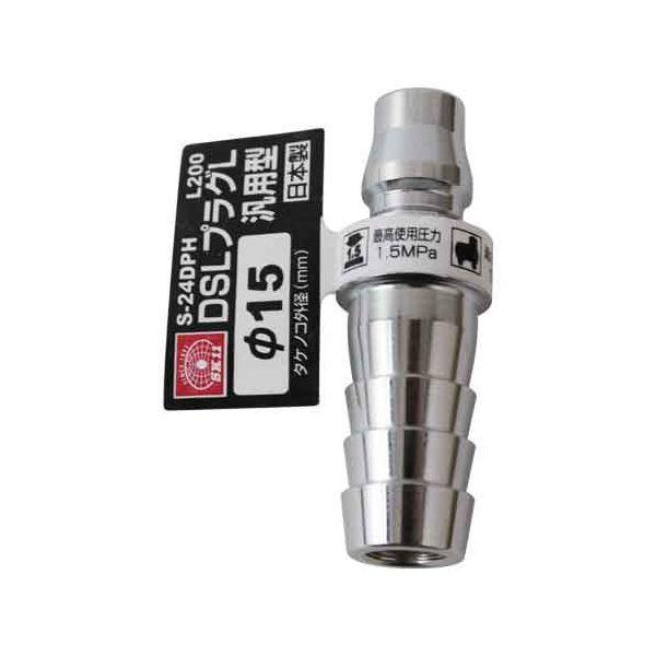 【用途】汎用型プラグ。【機能・特徴】エア配管を簡単にワンタッチで脱着出来ます。従来品と同形状の差し込み形状で本体を大幅に小型軽量化しました。純日本製です。【仕様】●汎用エアプラグ。●たけのこ外径:15mm。●サイズ:55X18。●重量:41g。●適用流体:空気。●最高使用圧力:1.5Mpa。●本体:鋼鉄・他。電動工具 エアーツール カプラジョイント