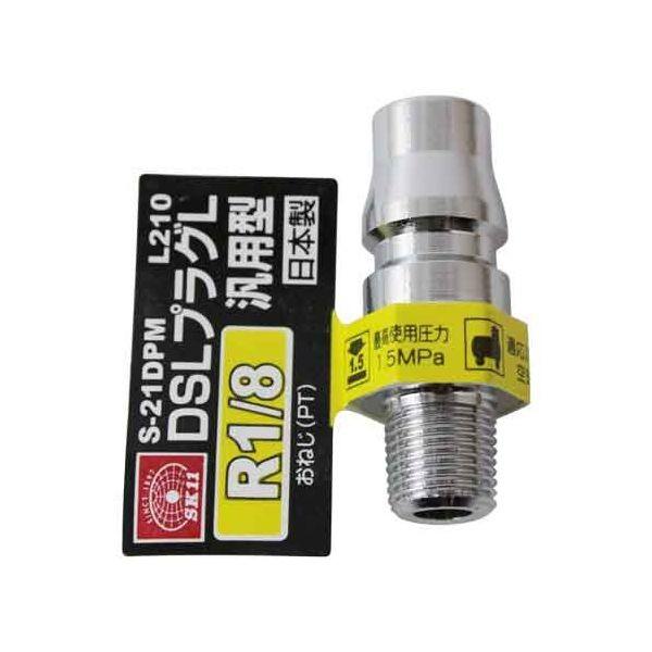 【用途】汎用型プラグ。【機能・特徴】エア配管を簡単にワンタッチで脱着出来ます。従来品と同形状の差し込み形状で本体を大幅に小型軽量化しました。純日本製です。【仕様】●汎用エアプラグ。●R1/8。●サイズ:37X14。●重量:22g。●適用流体:空気。●最高使用圧力:1.5Mpa。●本体:鋼鉄・他。電動工具 エアーツール カプラジョイント