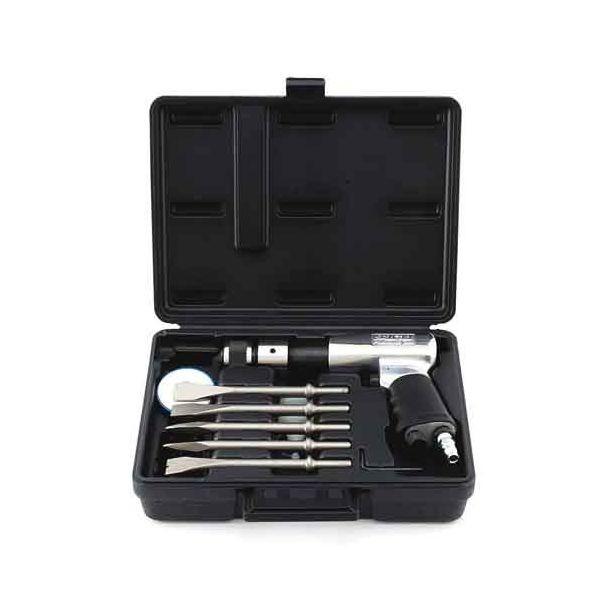 【用途】コンクリート・モルタル等のハツリ作業、金属の切断作業等。【機能・特徴】小型ハンマーのハイパワータイプです。クイックリテイナー付でワンタッチでチゼル交換が可能です。コンクリート・モルタル・石材のハツリ作業に最適です。先端のチゼルを取り替えることで、ボルトや鉄板の切断作業も可能です。【仕様】●本体寸法:H175mmXW170mmXD50mm・重量1.7kg。●打撃数:3200回/分。●空気消費量:340L/min。●使用空気圧力:0.6MPa。●空気取入口:RC1/4。●チゼ電動工具 エアーツール 工具