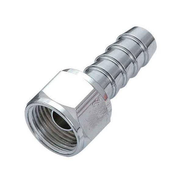 【用途】エアー配管継手(ホースジョイント)。【機能・特徴】ゴム・ウレタンホースと機器の接続に適しています。片口ナット付きです。ホースと機器の接続に最適です。【仕様】●接続ねじ:めねじPF3/8。●ホース口:11mm。●適用流体:空気。●最高使用圧力:1.5MPa。●常用圧力:1.0Mpa。●クロームメッキ。●真鍮。電動工具 エアーツール 配管継ぎ手ねじ