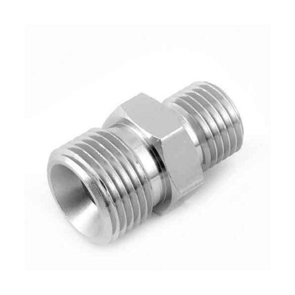 【用途】エアー配管継手(中間異径ニップル)。【機能・特徴】異径のホース・管及び機器を同方向に接続します。【仕様】●接続ねじ:おねじG(PF)1/4・おねじG(PF)3/8。●適用流体:空気。●最高使用圧力:1.5MPa。●常用圧力:1.0Mpa。●クロームメッキ。●真鍮。電動工具 エアーツール 配管継ぎ手ねじ