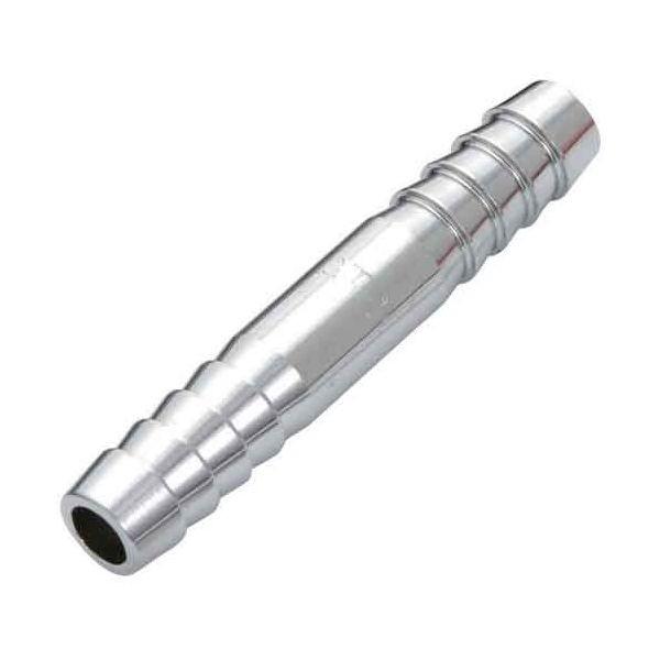 【用途】エアー配管継手(両口ホース継手)。【機能・特徴】ゴム・ウレタンホース同士の接続に適した両口ホース継手です。【仕様】●ホース口:11mm(両側)。●適用流体:空気。●最高使用圧力:1.5MPa。●常用圧力:1.0Mpa。●クロームメッキ。●真鍮。電動工具 エアーツール 配管継ぎ手ねじ