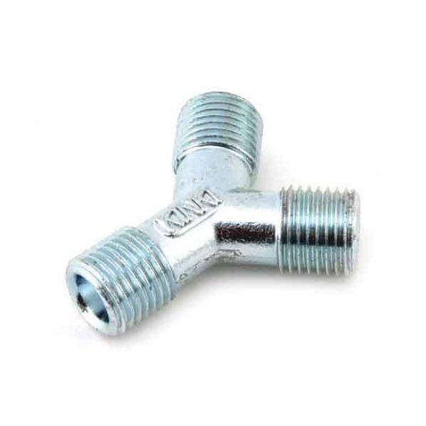 【用途】エアー配管継手(Y型ニップル)。【機能・特徴】同径の配管分配に適したY型ニップルです。【仕様】●接続ねじ:おねじPF1/4(3口とも)。●適用流体:空気。●最高使用圧力:1.5MPa。●常用圧力:1.0Mpa。●クロームメッキ。●亜鉛。電動工具 エアーツール 配管継ぎ手ねじ