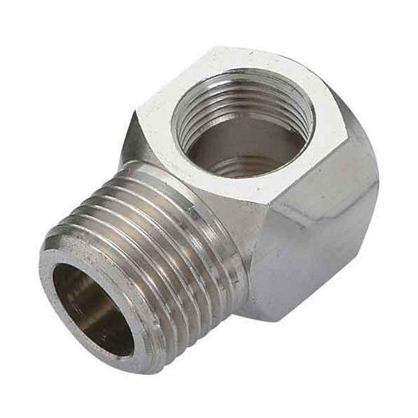 【用途】エアー配管継手(中間同径エアエルボ)。【機能・特徴】機器・配管の接続に使用し、配管の角度を90度変更できます。【仕様】●接続ねじ:おねじPT3/8・めねじPT3/8。●適用流体:空気。●最高使用圧力:1.5MPa。●常用圧力:1.0Mpa。●ニッケルメッキ。●真鍮。電動工具 エアーツール 配管継ぎ手ねじ