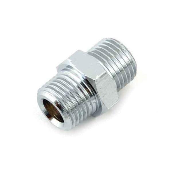 【用途】エアー配管継手(中間同径ニップル)。【機能・特徴】同径のホース・管及び機器を同方向に接続します。【仕様】●接続ねじ:おねじR(PT)1/8・おねじG(PF)1/8。●適用流体:空気。●最高使用圧力:1.5MPa。●常用圧力:1.0Mpa。●クロームメッキ。●真鍮。電動工具 エアーツール 配管継ぎ手ねじ